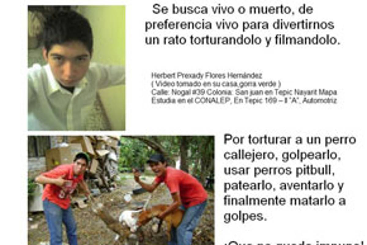 #JusticiaEnNayarit, #NoAlMaltratoAnimal y #LOSASESINOSDPERRITO son las etiquetas que se manejan en Twitter, en donde se pide castigo por los actos de los jóvenes.