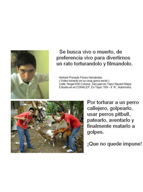 "Por los qe odiamos a MARCO ANTONIO LEDON BERNAL!!! ahora sii, les salio lo marica a los weyes,, no que muy hombres pues?..(sic)", es el grupo creado en Facebook por casi cinco mil personas en contra de Marco Antonio Bernal Ledón, Herber Prexady Flores Hernández y Angel Marín González, a quienes llaman en Internet como los "mataperros".