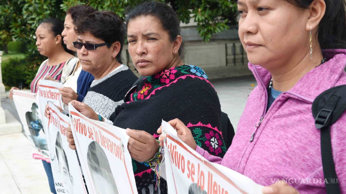 A pesar de que ya ha pasado un año de la desaparación de sus hijos, estas mujeres nos se dan por vencidas y los siguen buscando. ¡"Vivo se lo llevaron!¡Con vida lo queremos!", rezaban las pancartas que llevaban con las fotografías de sus hijos ante las oficinas del Congreso.