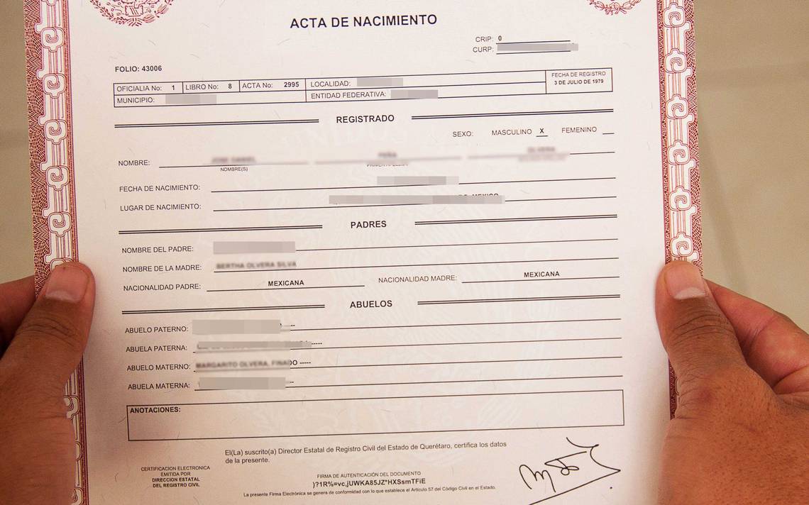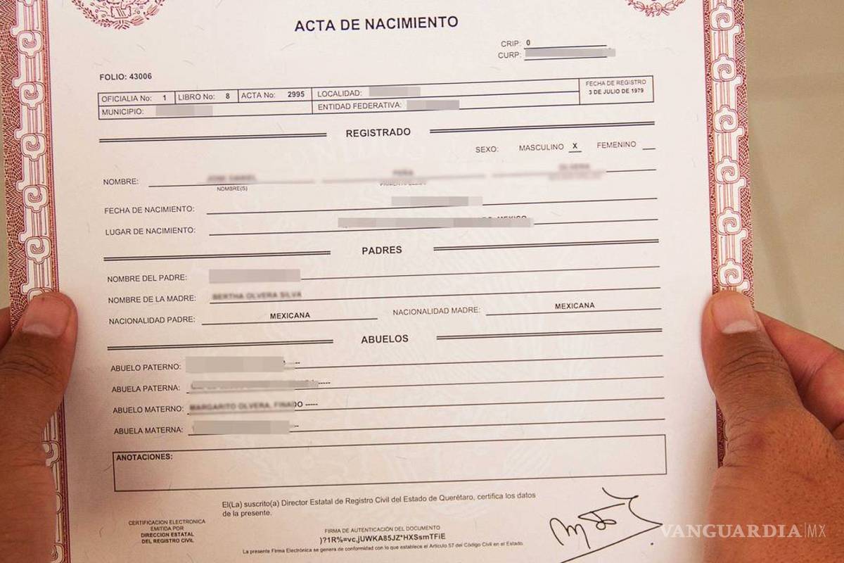 Ciudad de México. Seis de cada 10 personas en México que no tienen acta de nacimiento son niñas, niños y adolescentes. Por ello, la Secretaría de Bienestar buscará firmar un convenio con los gobiernos de 12 estados para que se puedan dar actas de nacimiento a todas las niñas y niños que carecen de ella.