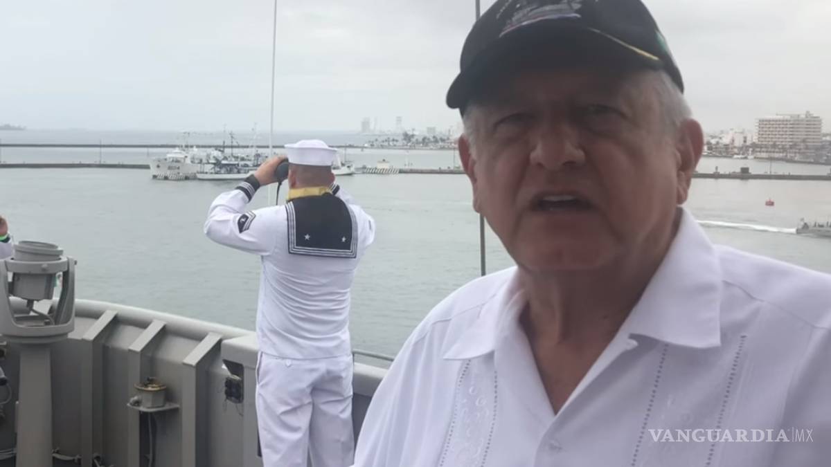 En el mensaje que envió desde la embarcación AMLO aprovechó estar a bordo del navío para asegurar que México “no será agresivo con ninguna nación”.