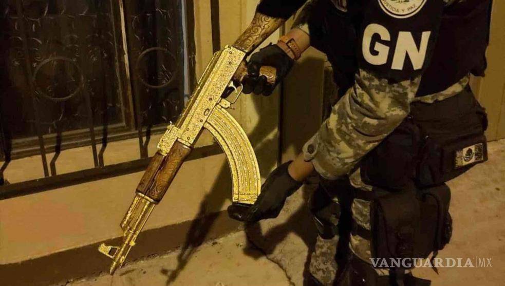 LEÓN.- La Guardia Nacional aseguró un fusil AK-47, mejor conocido como "cuerno de chivo", chapado en oro.