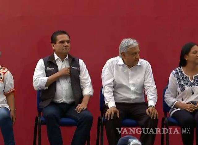 Abuchean a gobernador de Michoacán en evento de AMLO