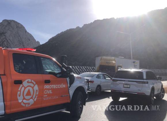 MONTERREY, NL.- Un accidente sobre la autopista Monterrey-Saltillo en el que se vio involucrado un tractocamión afectó la vialidad de la mencionada vía.