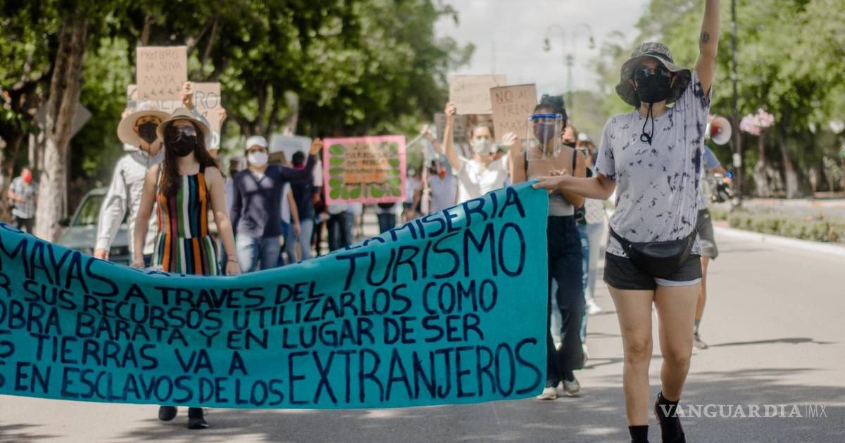Activistas marchan contra Tren Maya en Yucatán