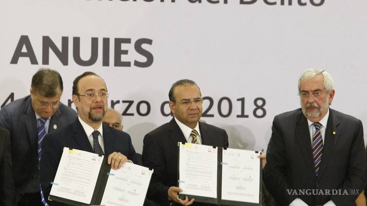 La Anuies, la Segob y los rectores de universidad públicas del país acordaron emprender un programa de trabajo para coordinar acciones de prevención social del delito, de violencia de género y de respeto a derechos humanos, pero no dieron más detalles sobre cómo operará.