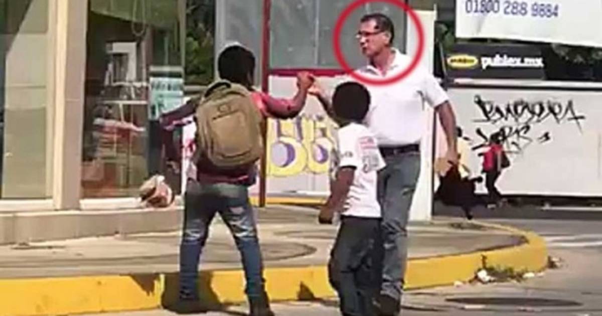 Tras ese acto, Vidal Segovia se pone frente al niño y le arrebata una bolsa negra y más dulces; además, tras amenazar con golpearlo, le dice: “¡Vete pa’ allá!”.