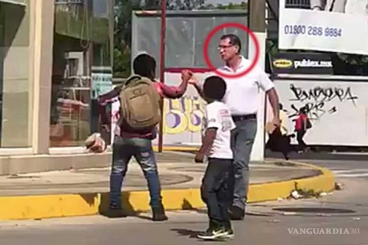 En un video que circula en redes sociales se aprecia al director de Comercio de Coatzacoalcos, Fernando Vidal Segovia, cómo jalonea al menor, sobre una avenida, para abrirle su mochila café y tirarle los dulces que vendía.