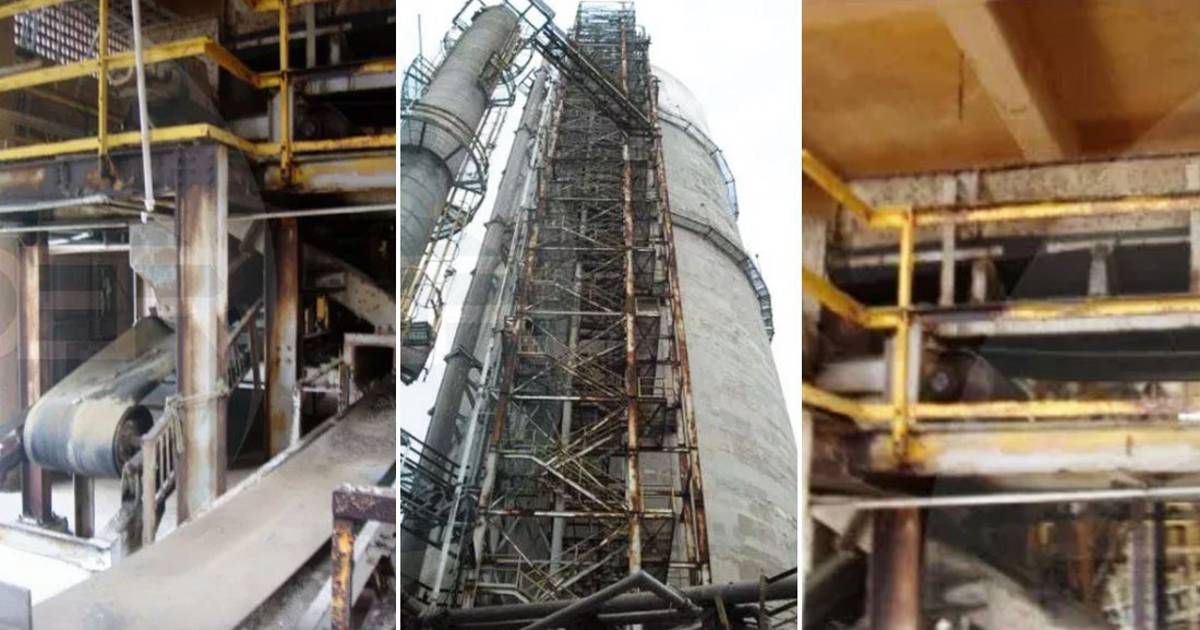 Según la vista de las imágenes, la Planta de Urea I en la sección de la torre está completamente dañada y necesita ser restaurada en puntos clave de la estructura. Asimismo, el interior de la torre también presenta importantes muestras de deterioro.