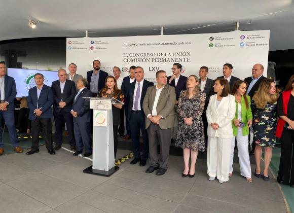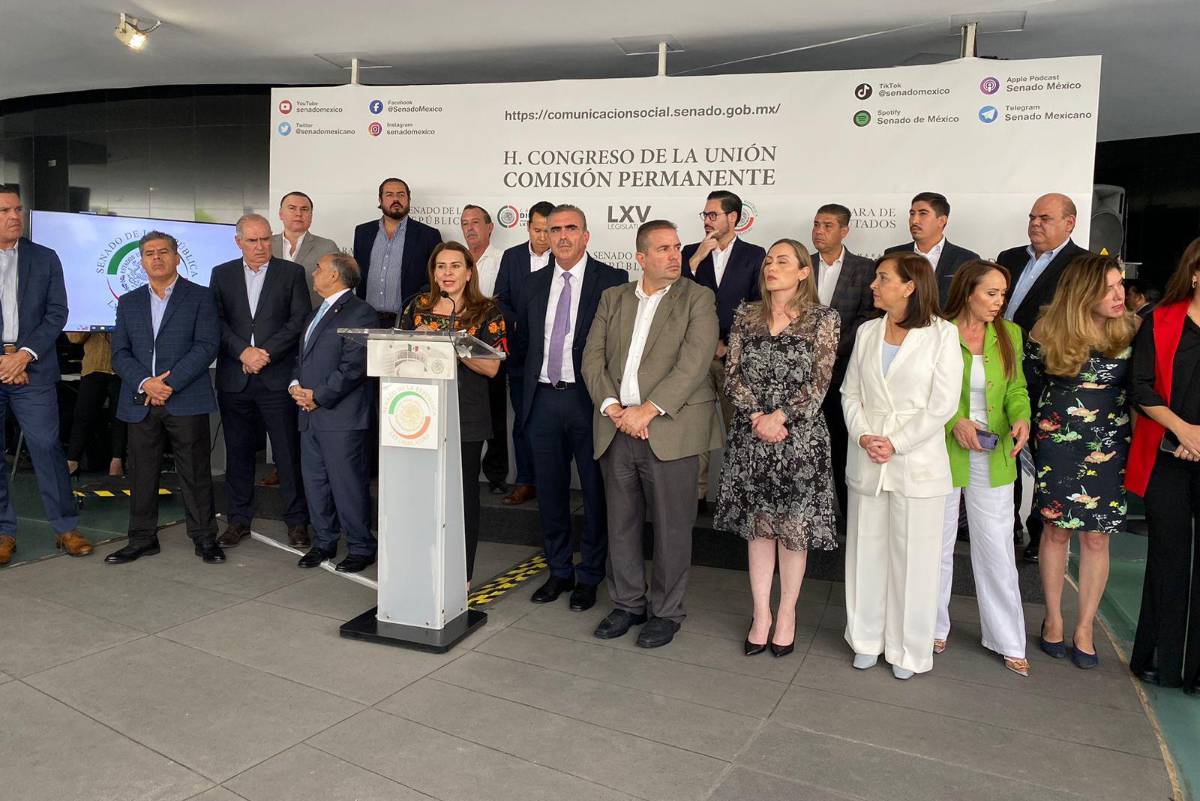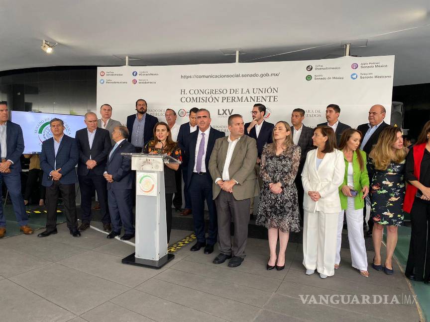 Los presidentes municipales que integran el “Pacto Nuevo León” ofrecieron una rueda de prensa en el Senado de la República, este miércoles.