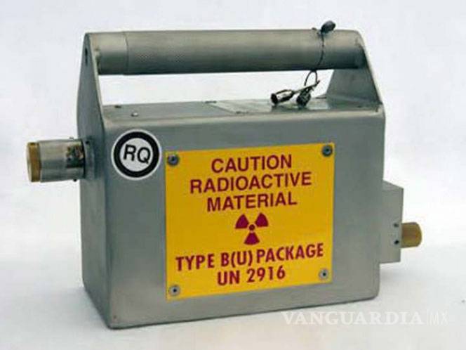 Es un contenedor marca Industrial Nuclear Co, modelo IP-100 con número de serie 7348; dimensiones 30 por 35 centímetros y 20 de profundidad, hecha de acero inoxidable al exterior, uranio y tungsteno al interior, contiene un isótopo radiactivo llamado iridio 192.