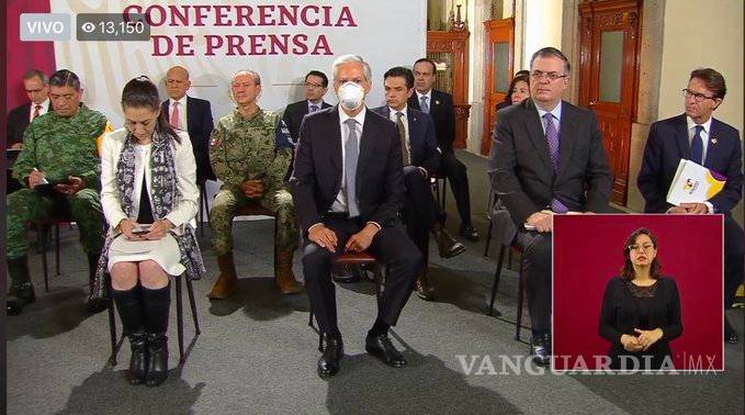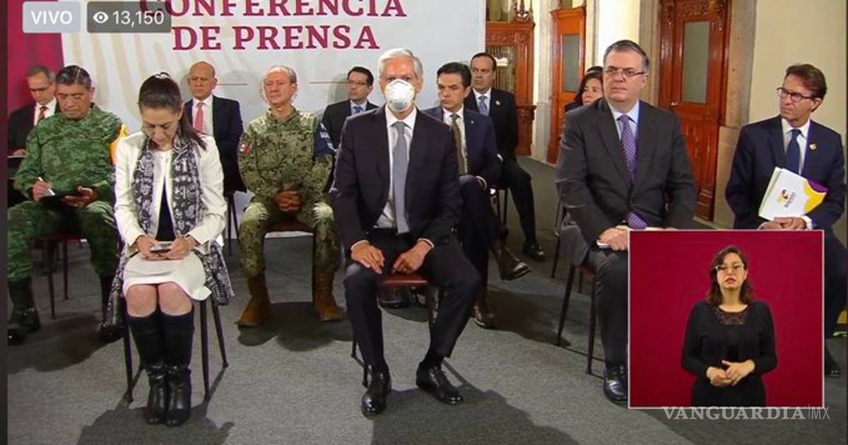 SOLO UNO CON CUBRE BOCA en la conferencia mañanera ( @alfredodelmazo ) donde AMLO anuncia que mañana dará a conocer el regreso a la “nueva normalidad”