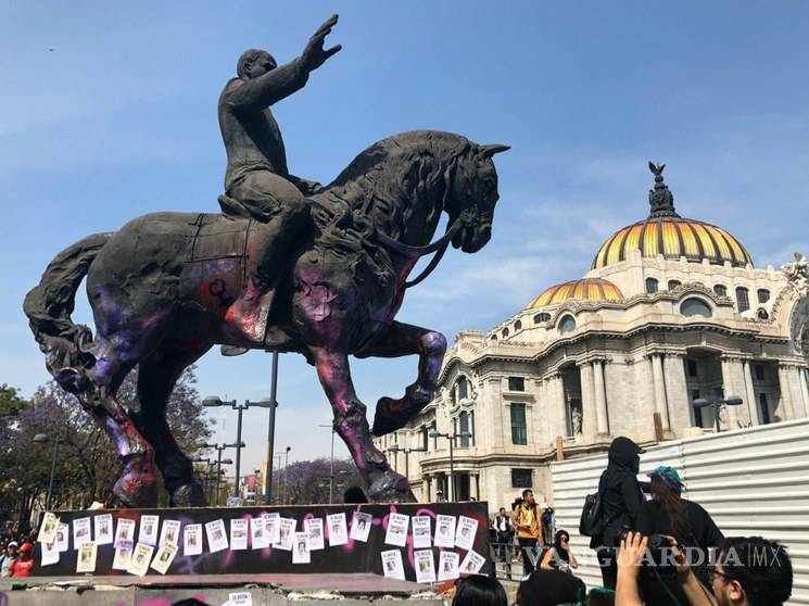 Además lanzaron globos con pintura a este monumento histórico y escribieron algunas leyendas como: “Estado asesino”; “Por ti, por mi, por todas”; “México feminicida”; “Que lo único que desaparezca sea tu machismo”.