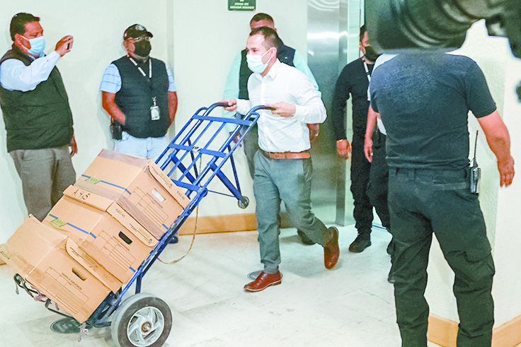 A bordo de una camioneta tipo pick-up, los integrantes de la Unidad Especializada en Investigación de Operaciones con Recursos de Procedencia Ilícita y de Falsificación o Alteración de Moneda, adscrita a la FGR, transportaron los expedientes en las cajas.