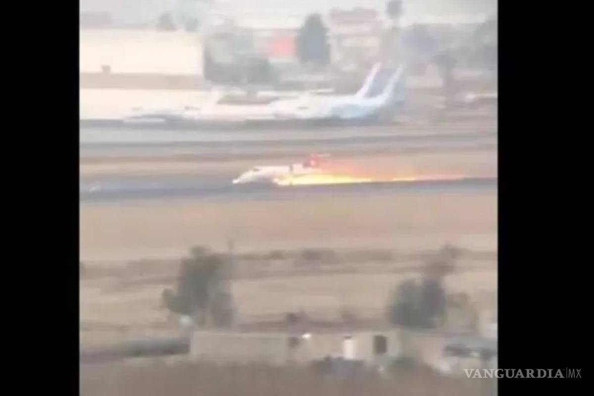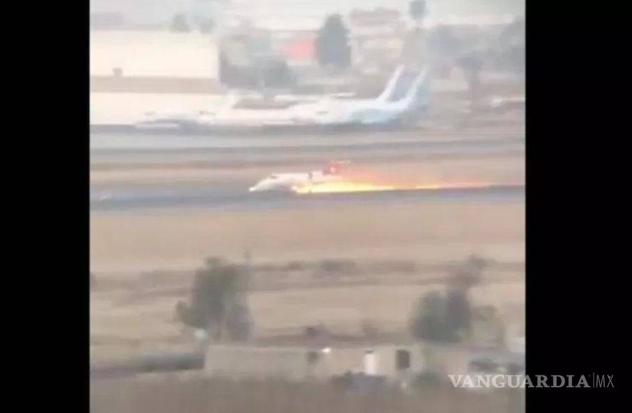 Ambulancia aérea se despista en aeropuerto de Toluca y deja estela de llamas (VIDEO)
