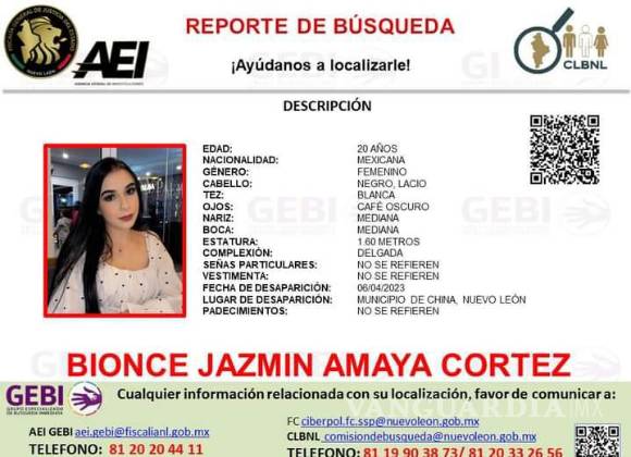 Tras la notoriedad que tomó el caso de desaparición de Bionce Jazmin este miércoles en redes sociales, la Fiscalía General de Justicia de Nuevo León confirmó que ya emitió un reporte de búsqueda por la joven.