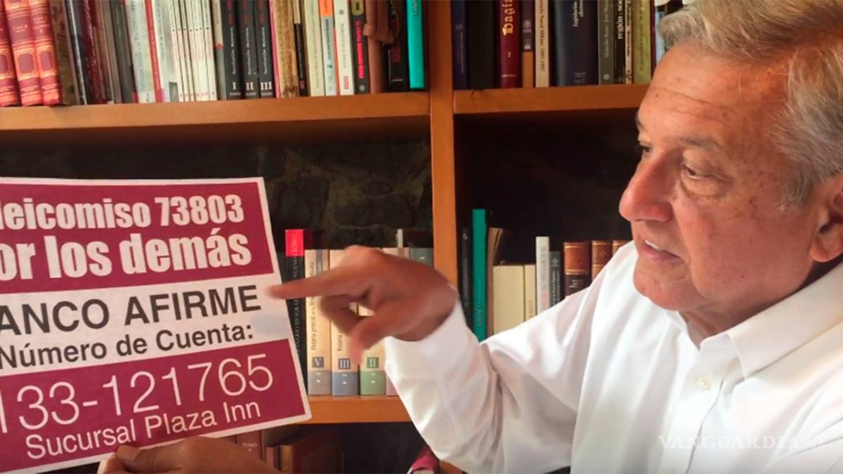 México.- Andrés Manuel López Obrador anunció que su partido destinará 103 millones de pesos a los más de 45 mil damnificados por los sismo ocurridos en septiembre a través de un fideicomiso.