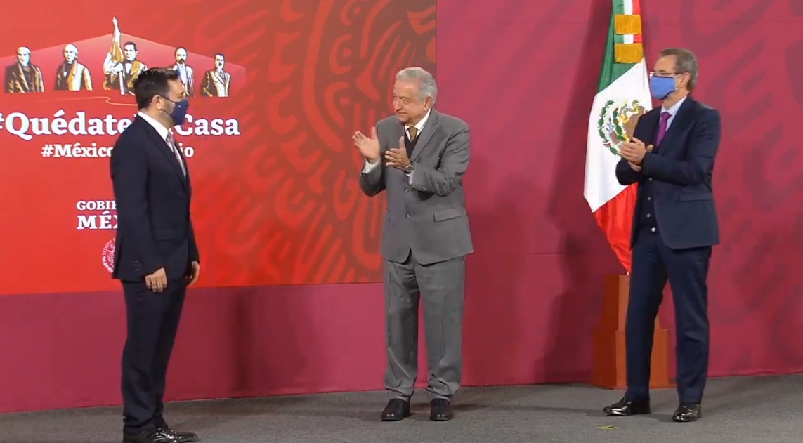 López Obrador y Esteban Moctezuma dieron posesión del cargo a Reyes Sandoval frente a los medios de comunicación.