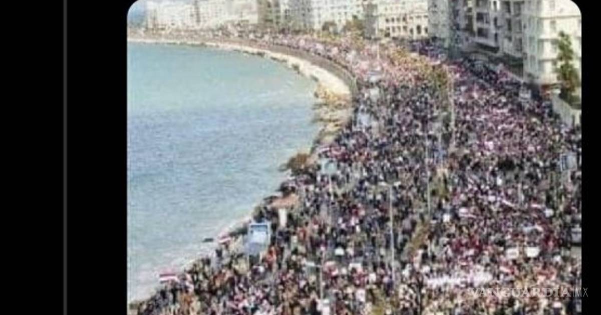 El jefe del Ejecutivo mostró un tuit de Artículo 19 con una foto de una protesta ciudadana, aunque ésta corresponde a Egipto.