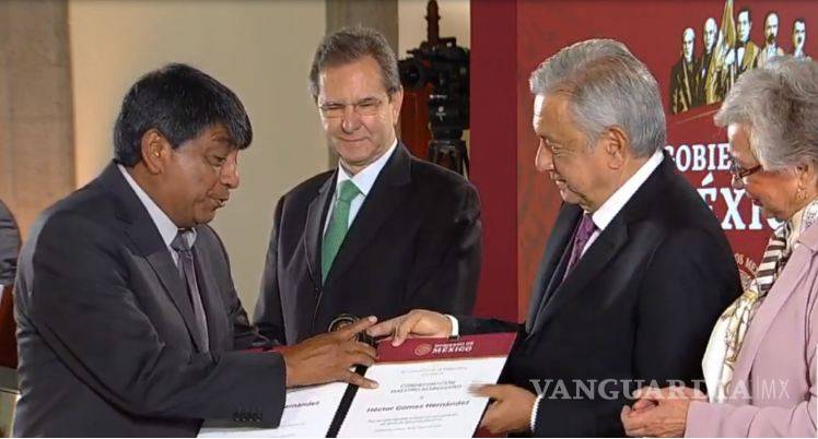 AMLO entrega reconocimiento Othón Salazar Ramírez a los profesores mexicanos