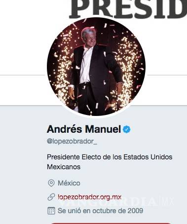 Alrededor de las 2:00 de la tarde, la cuenta oficial reflejó el cambio de estatus. El entonces candidato pasó a convertirse en “Presidente Electo de los Estados Unidos MExicanos” y es así como todos los seguidores que lo consulten, así como sus 4.46 millones que ya lo siguen pueden ser testigos del cambio.