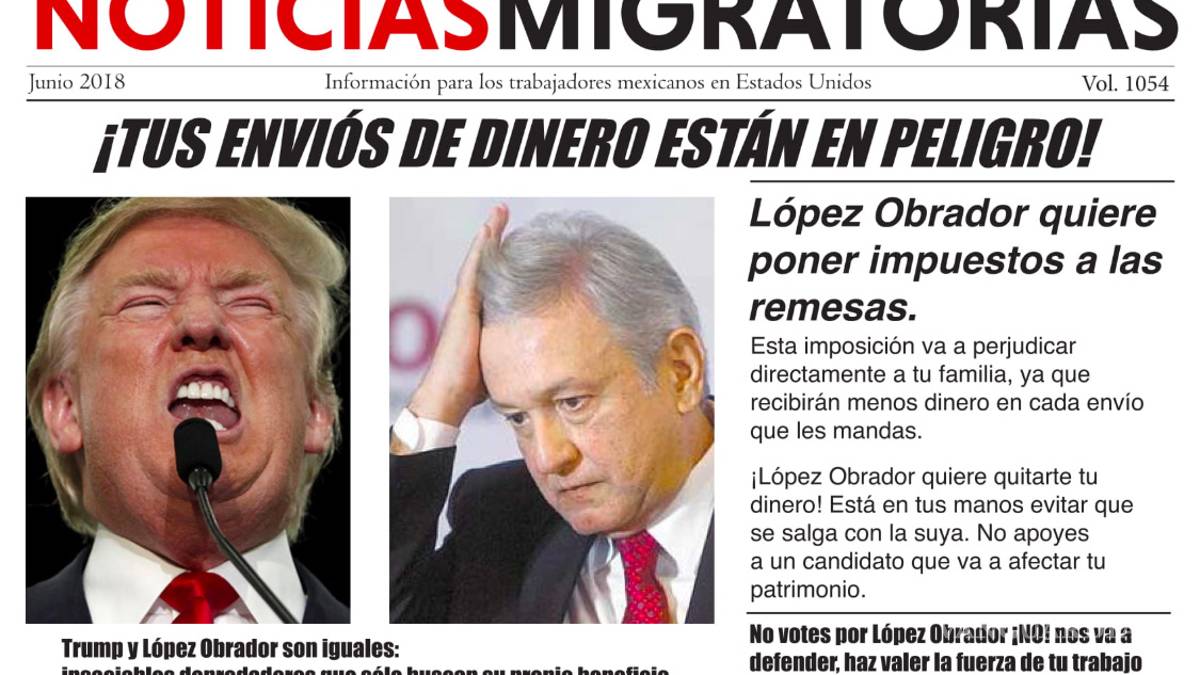 En un video que ya acumula más de 100 mil reproducciones en redes sociales, un usuario presenta un panfleto en el que se señala: “¡TUS ENVÍOS DE DINERO ESTÁN EN PELIGRO! López Obrador quiere poner impuestos a las remesas” y llama a no votar por el candidato de la coalición “Juntos Haremos Historia”.
