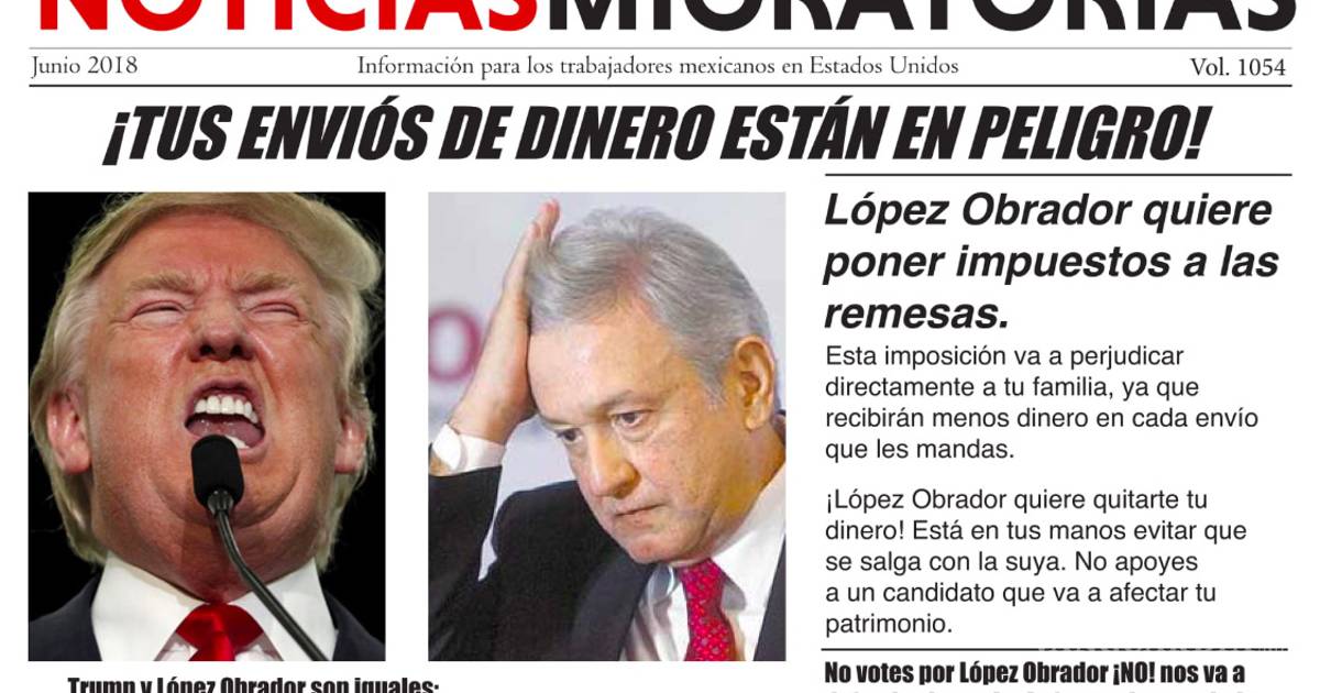 Pero esta noticia es falsa. Ni en su Proyecto de Nación 2018-2024, ni en sus discursos públicos Andrés Manuel López Obrador ha manifestado que vaya a poner impuestos a las remesas.