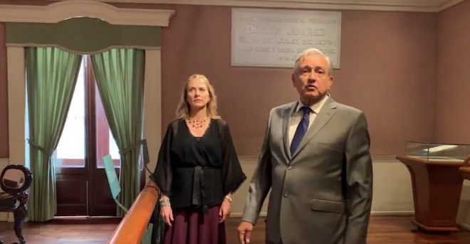 AMLO y Beatriz Gutiérrez muestran habitación de Juárez en Palacio Nacional