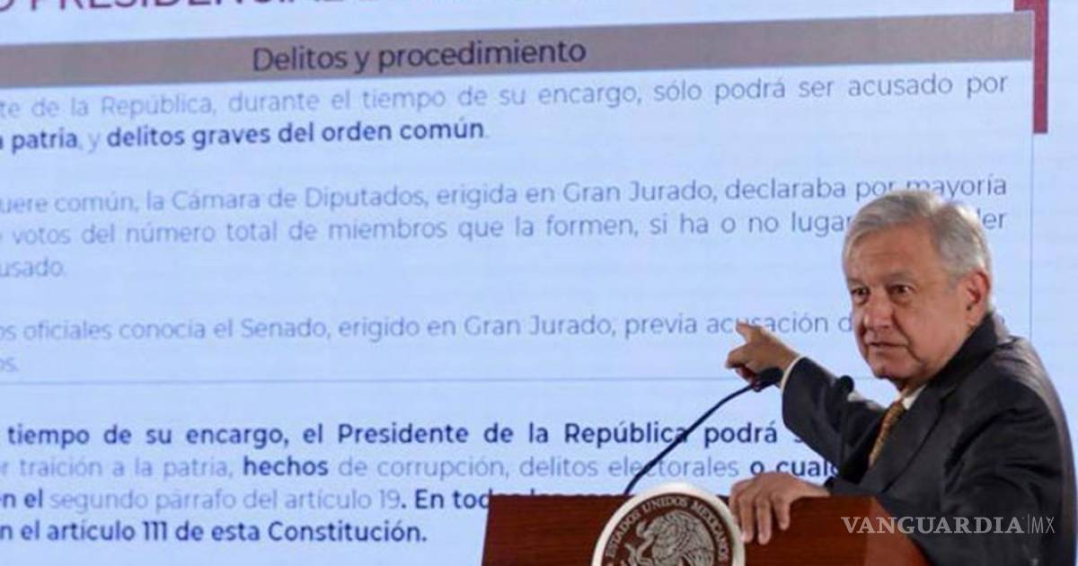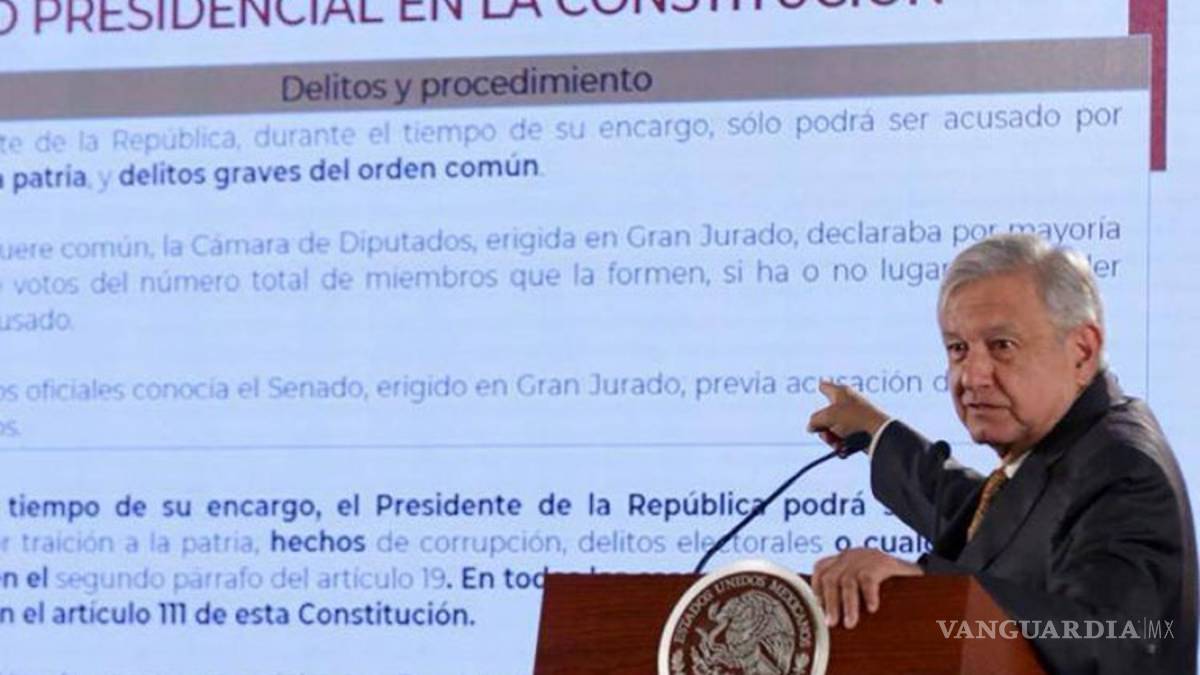 La iniciativa del Ejecutivo Federal contemplaba que pueda ser juzgado, además de traición a la patria, por hechos de corrupción, delitos electorales o delitos graves como abuso o violencia sexual contra menores, delincuencia organizada, homicidio doloso, feminicidio, violación, secuestro, trata de personas o robo, contemplados en el artículo 19 constitucional.