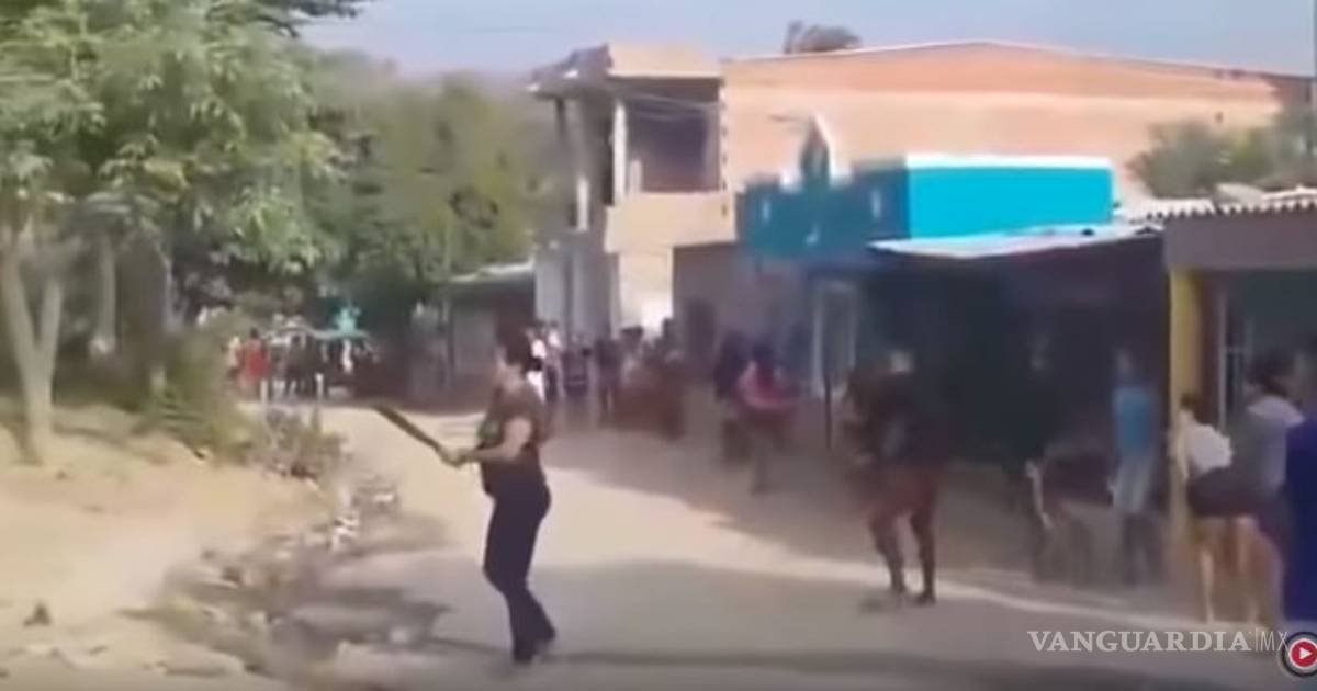 El video difundido en redes sociales muestra como la vecina agresora sostiene un machete mientras pronuncia amenazas, acompañada de un grupo de mujeres y jóvenes, mientras otras personas del vecindario observan el incidente.