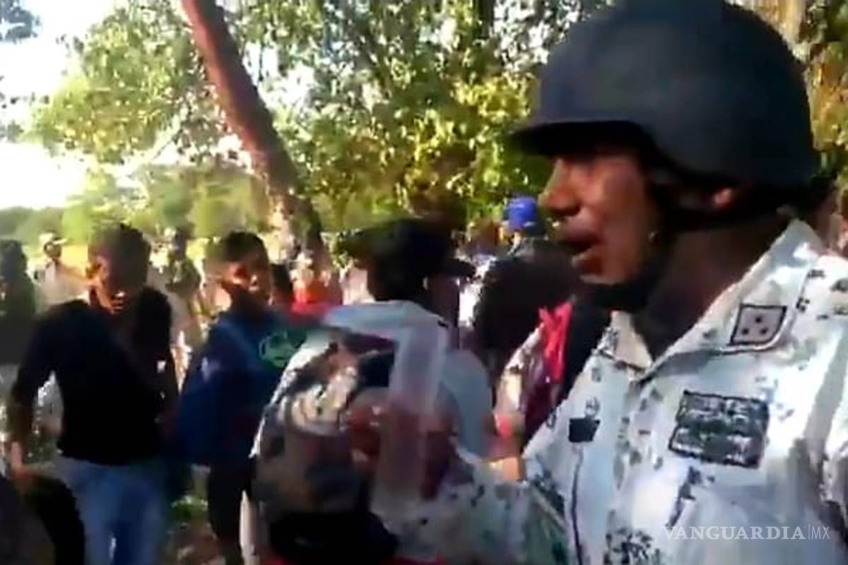 La Guardia Nacional informó que el elemento de la corporación que aparece en un video amenazando con lanzar gas pimienta contra migrantes en Chiapas "nunca tuvo en su poder" la sustancia "ni lo ejerció en contra de persona alguna".