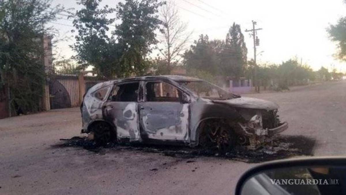 A dos kilómetros de San Miguelito, por el camino que conduce a Francisco Villa, Chihuahua, los grupos operativos encontraron un vehículo Tahoe incinerado y en el interior los restos calcinados de una mujer y sus cuatro hijos.