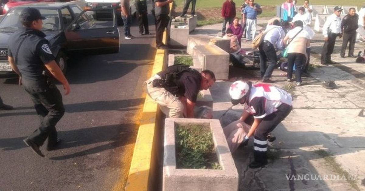 Naucalpan. Méx. Una mujer falleció y al menos diez personas resultaron lesionadas tras ser arrolladas por un automóvil que iba a exceso de velocidad, y salió de carriles del Periférico norte; el auto cayó en la explanada de las Torres de Satélite, donde 300 colonos alistaban una manifestación en contra de la inseguridad que se vive en este municipio.