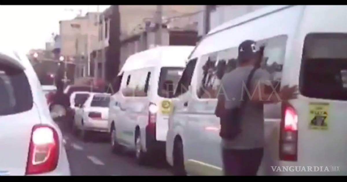 La grabación, difundida este viernes, muestra a un hombre caminando entre los autos que se encuentran detenidos por el alto de un semáforo, al tiempo que entrega folletos a los automovilistas y pasaje de una combi.
