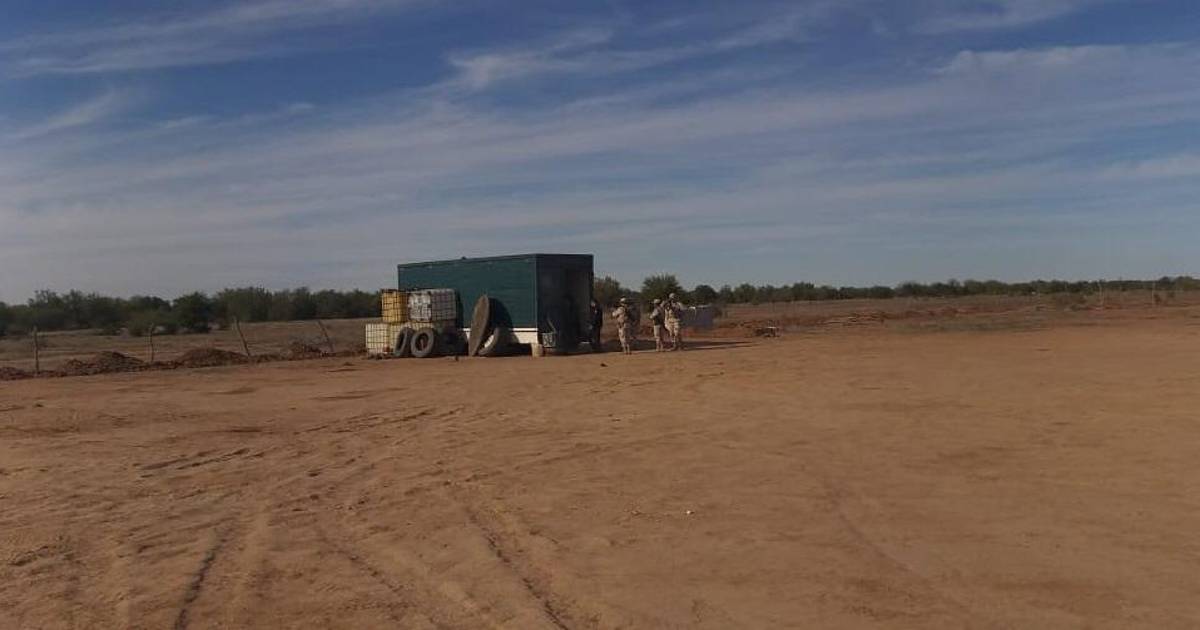 También se aseguró en el mismo lugar una caja de tráiler color verde, que era utilizada como bodega, con 11 bidones de mil litros en el interior, todos vacíos y una motobomba.