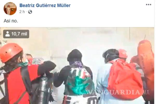 “Así no” dice Beatriz Gutiérrez por bomba durante marcha, Facebook le borra el post