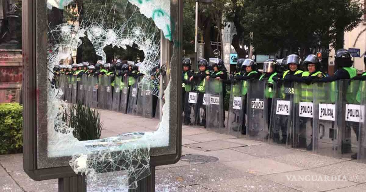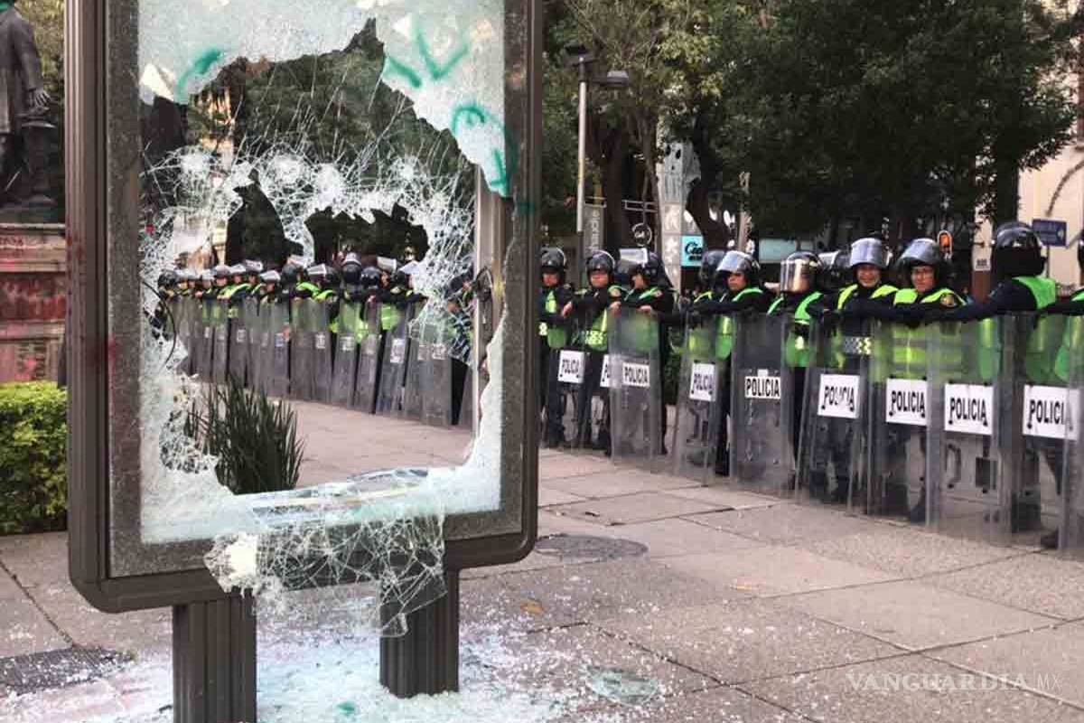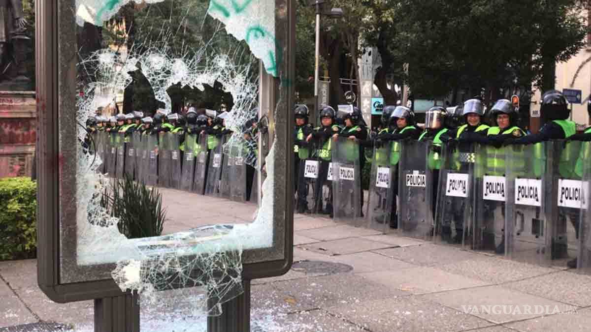 Avanza marcha feminista en dirección al Zócalo de CDMX; encapuchados realizan destrozos y pintas
