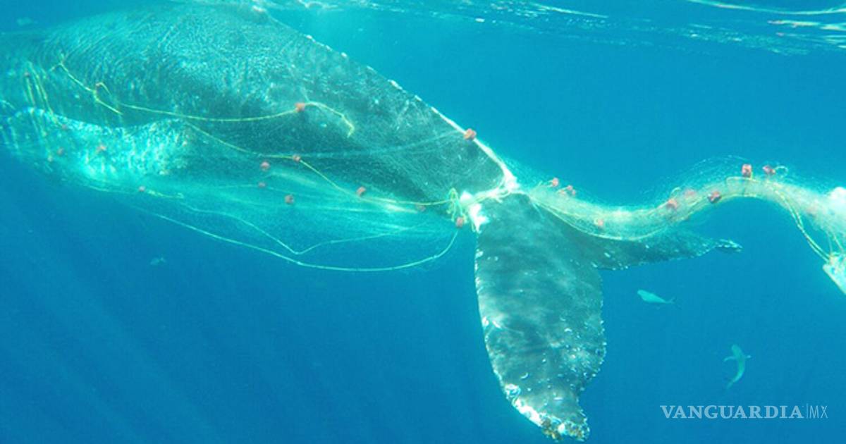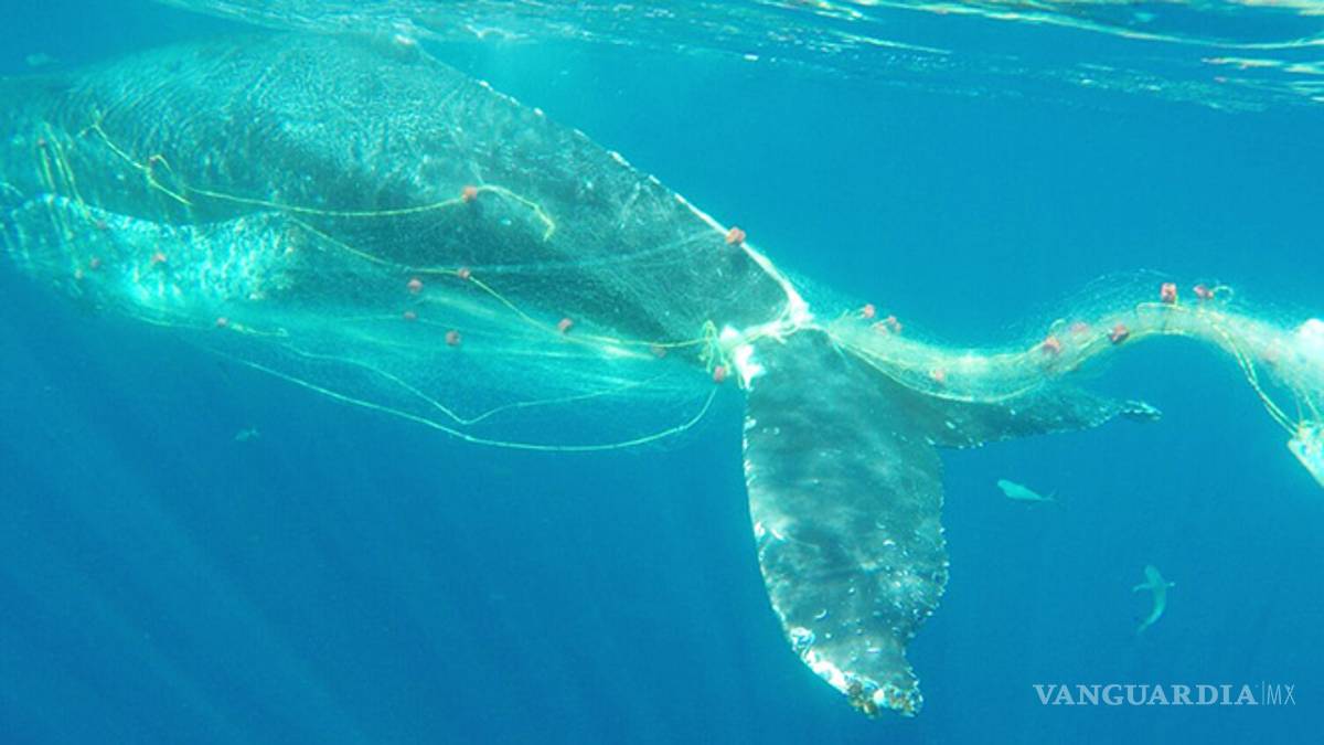 Ballena jorobada queda atrapada en red de pesca en Cabo San Lucas