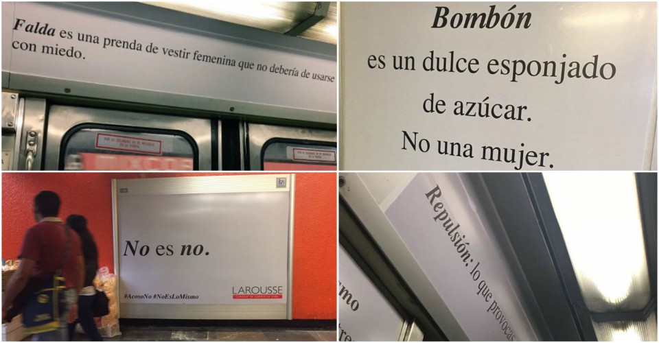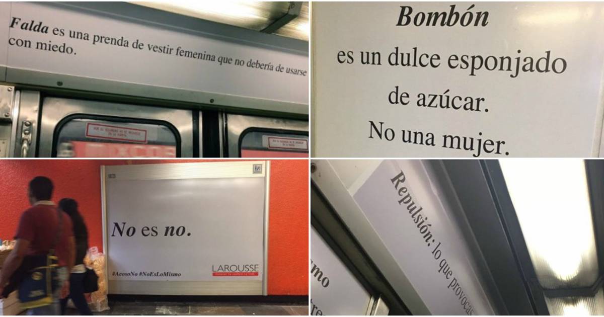 “Bombón es un dulce esponjado de azúcar. No una mujer”, es una de las frases que puedes leer ahora mismo en carteles a tu alrededor, si estás viajando en un vagón del Metro de la Ciudad de México.