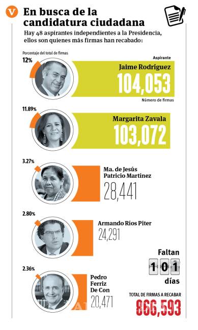 CDMX.- Luego de superar las firmas captadas por Margarita Zavala, su más cercana rival, para lograr la candidatura independiente la Presidencia, el gobernador Jaime Rodríguez Calderón, “El Bronco”, atinó a decir que “caballo que alcanza, gana”.