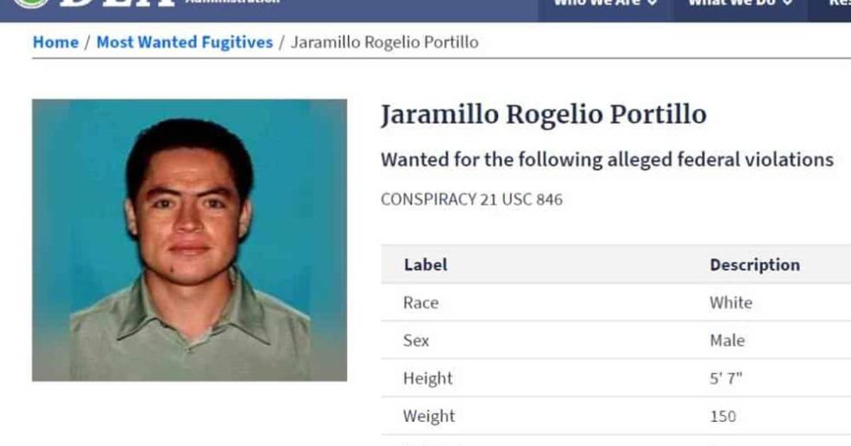 La ficha criminal vigente de la DEA señala que Portillo Jaramillo es un fugitivo de los más buscados, "peligroso y está armado".