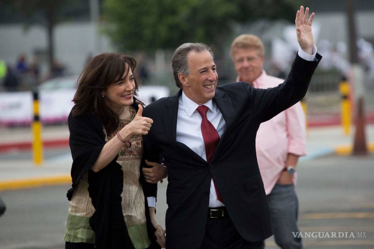 José Antonio Meade, candidato del PRI, PVEM y Nueva Alianza, fue el primer en arribar, en una camioneta RAM, blanca. El aspirante estuvo acompañado de su esposa, Juana Cuevas, y el productor, Carlos Alazraki.