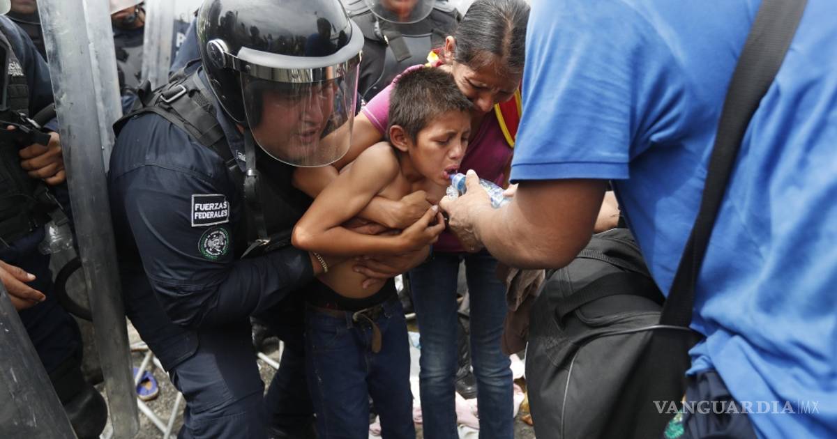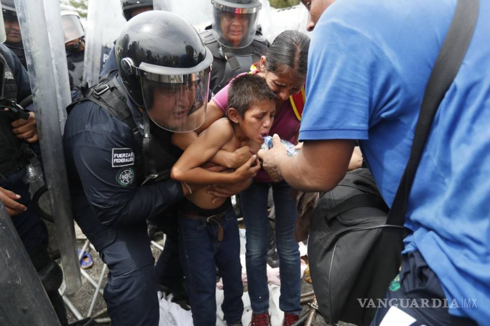 La caravana, que se dirige hacia Estados Unidos, cruzó a la fuerza el primer cerco policial de unos cien antimotines para dirigirse a la reja que separa a Guatemala de México.