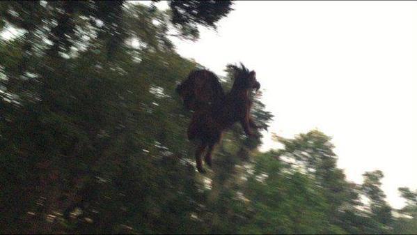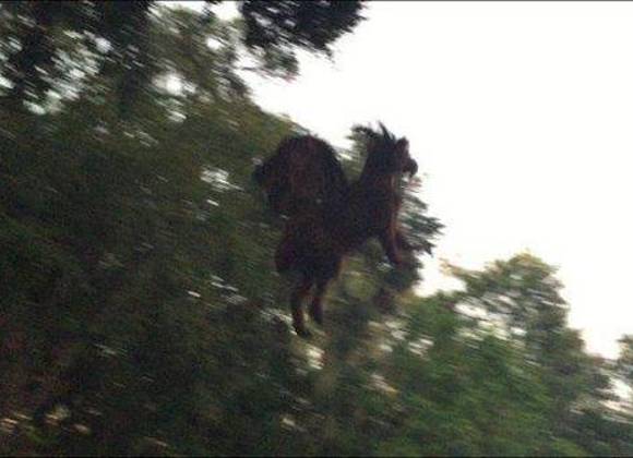 El texto que acompañaba la imagen decía “conducía cerca del campo de golf Galloway, en la Ruta 9, cuando tuve que sacudir mi cabeza un par de veces al ver ese animal con aspecto de llama”. “Como si eso no fuera suficiente extraño, la bestia abrió sus alas y empezó a volar por todo el campo de golf… O mi mente me juega trucos o acabo de ver al demonio de Jersey”, aseguró el testigo.