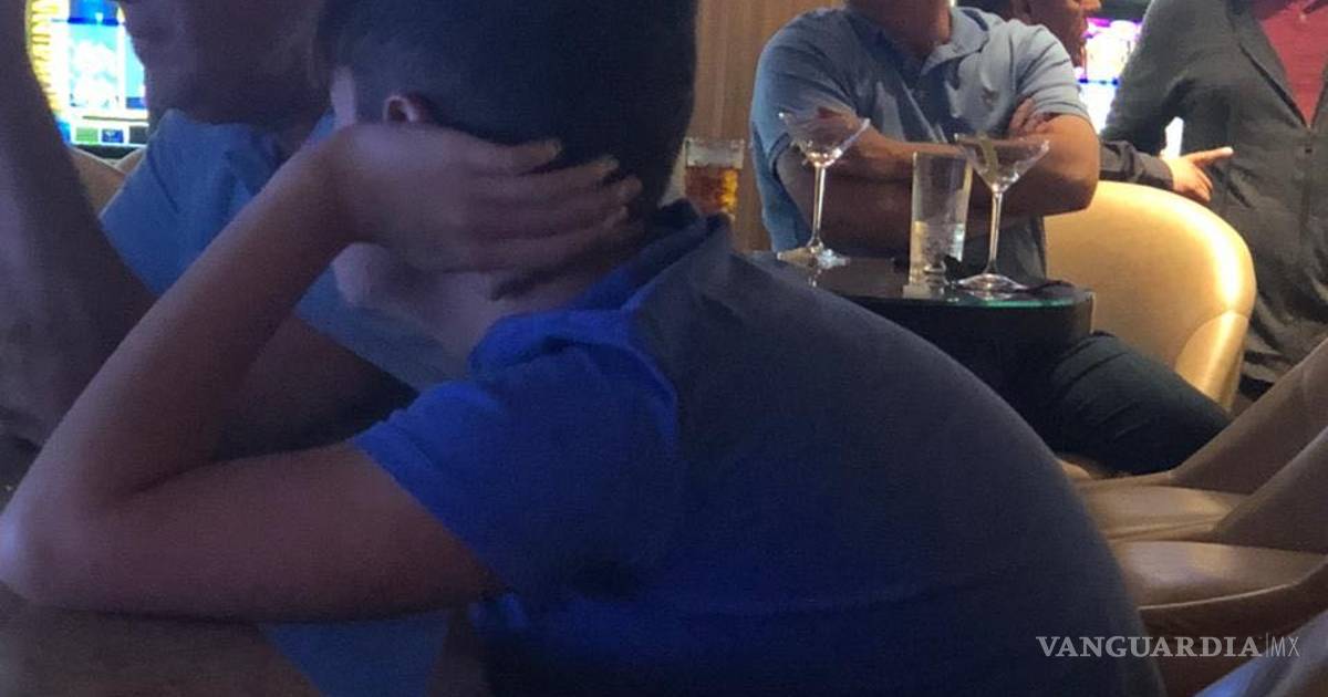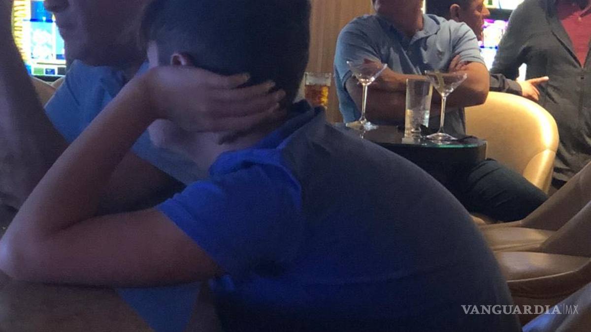En las fotografías se le ve sentado a la mesa junto a dos hombres, en donde se aprecian copas de lo que serían bebidas alcohólicas.
