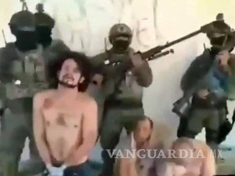 En el video se ven a tres hombres semidesnudos hincados y atados de pies y manos, mientras que otros tres sujetos con vestimenta tipo militar en la que se aprecia el emblema del CDN les apuntan con armas de alto calibre.