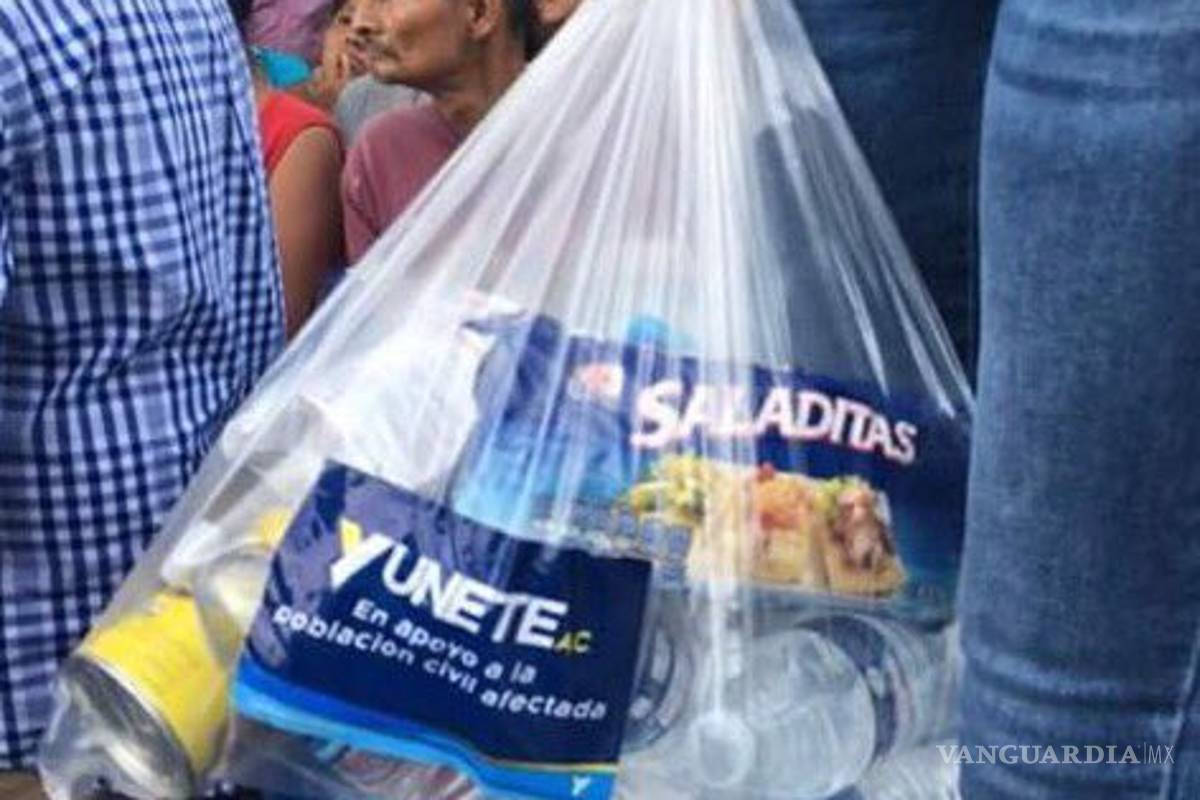 Las bolsas con despensas, que contenían botellas de agua, galletas saladas y latas de frijoles, que llevaban los colores y tipografía que el gobernador usó durante su campaña, fueron entregadas en colonias de Coatzacoalcos afectadas por el sismo, como la San Silverio.