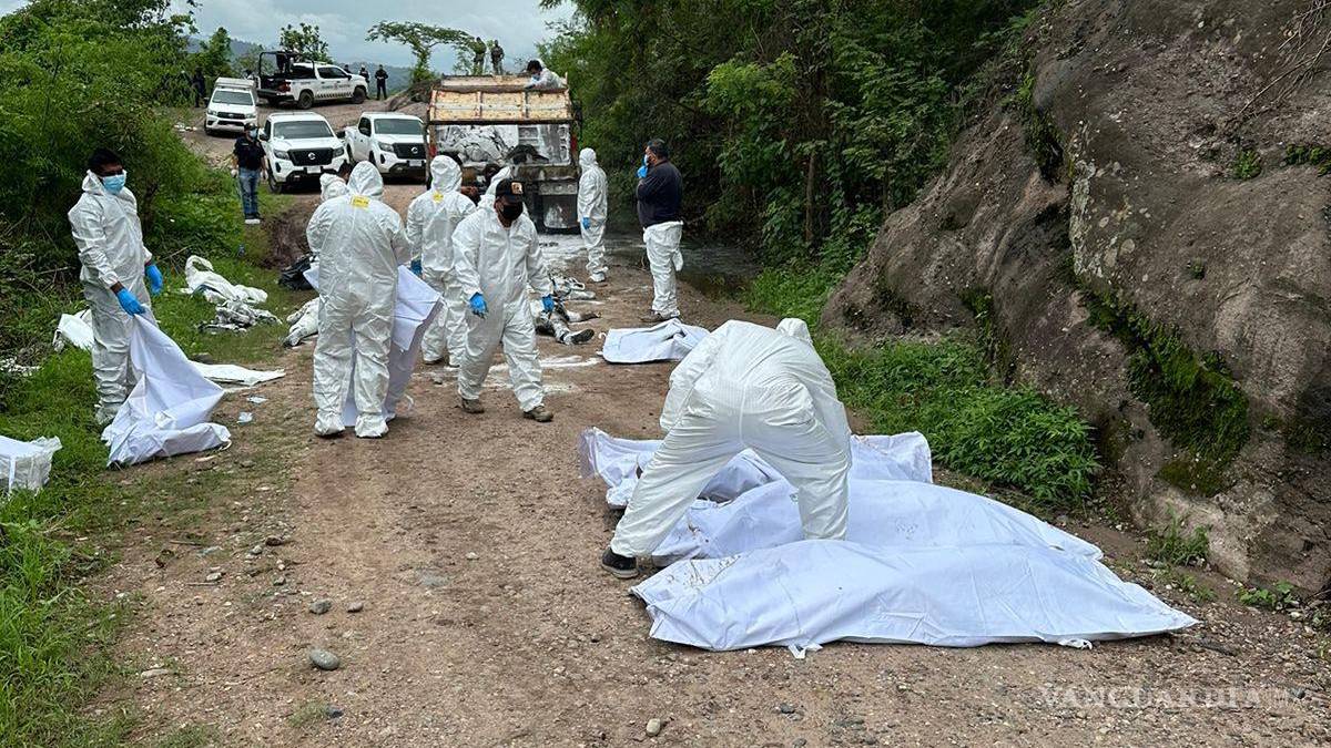 Catorce de los sujetos se encontraban en la caja de un camión de volteo, otros dos en la cabina, otro par a un lado de la unidad y uno más a 100 kilómetros. Dentro de los informes iniciales, se esclareció que todos contaban con heridas de arma de fuego.