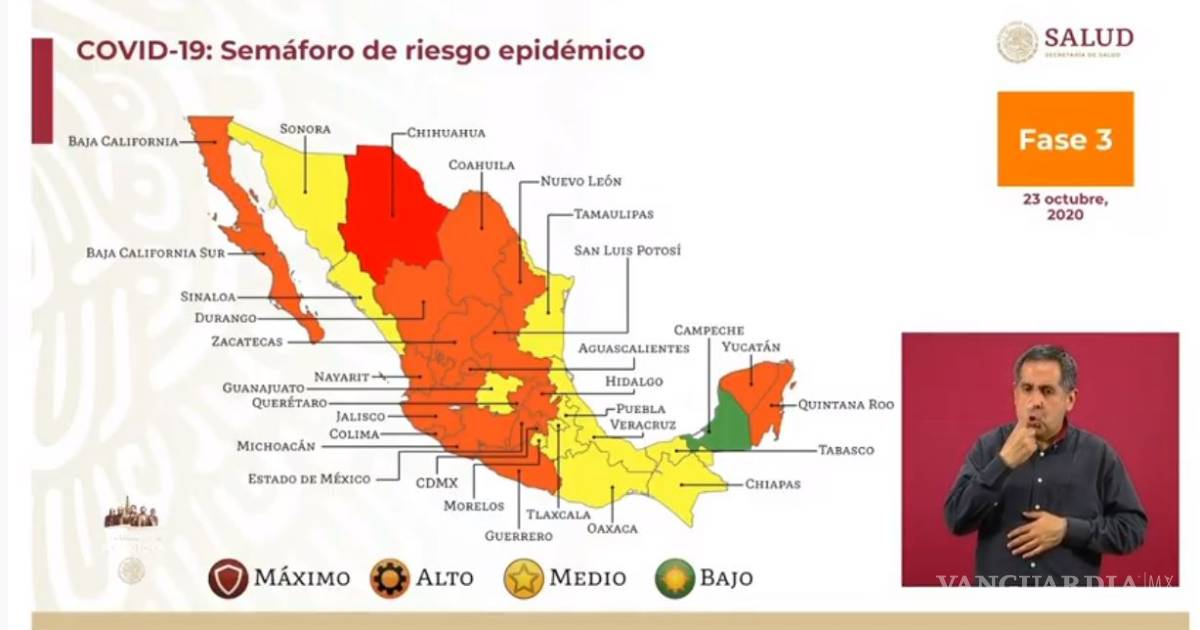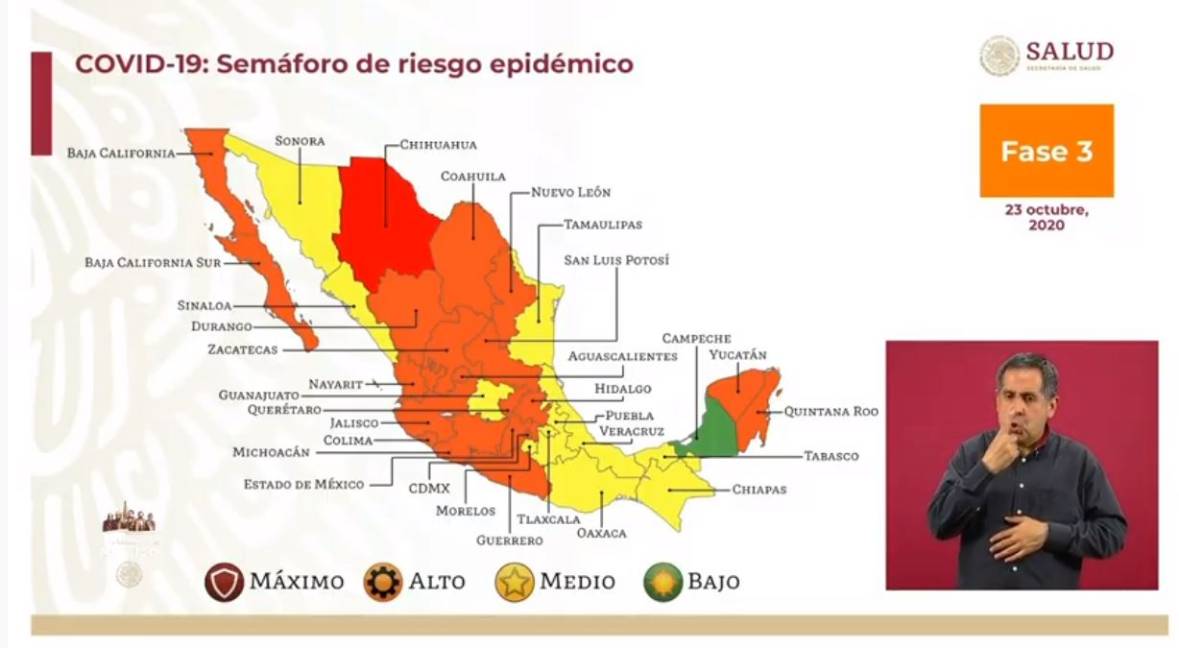 Autoridades sanitarias informaron que 19 estados estarán en color naranja y 11 en color amarillo.