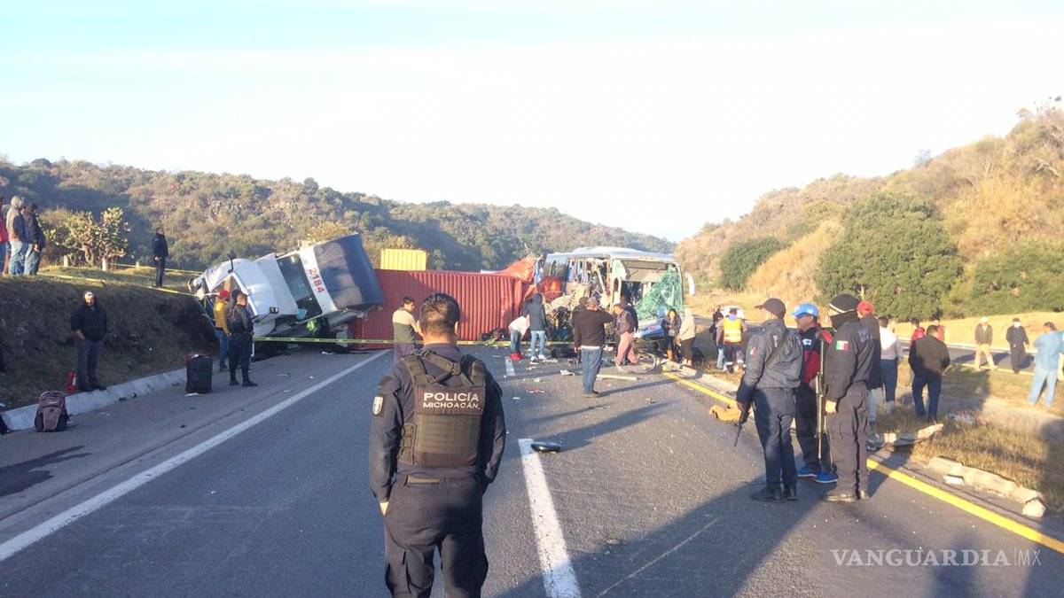 Chocan tráiler y autobús en carretera de Michoacán; deja 18 lesionados y dos muertos
